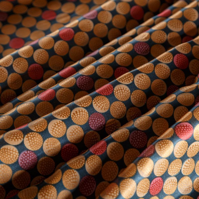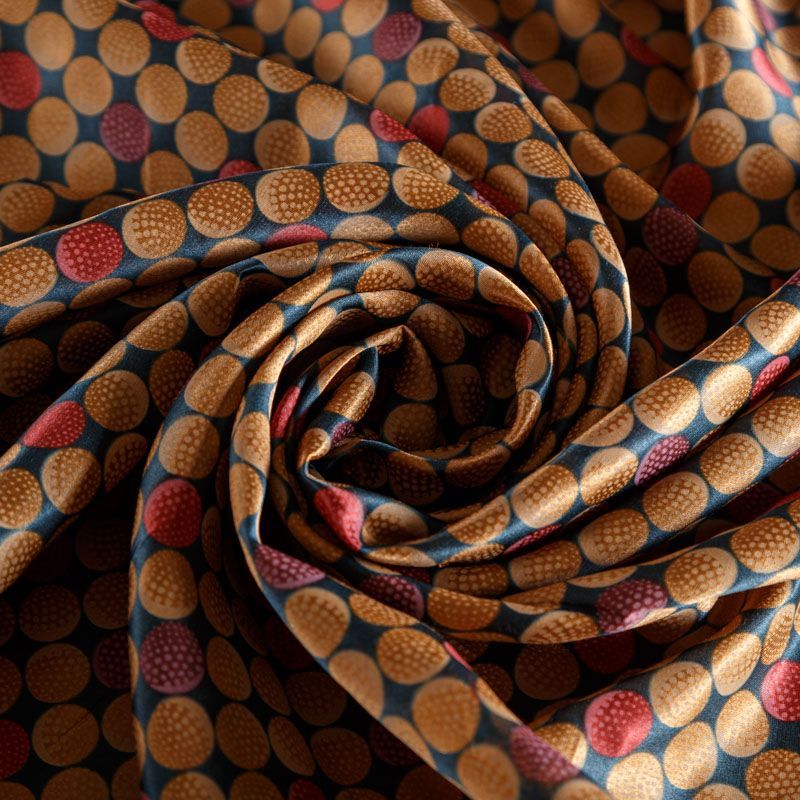 Итальянский атласный шелк с геометрическим принтом в карамельно-красных оттенках. Ткань тонкая, не просвечивает, отлично драпируется, легкая и струящаяся. Идеально подойдет для пошива платьев и сарафанов расклешенных моделей, с воланами, летящих юбок, топов, блузки, костюма в пижамном стиле.