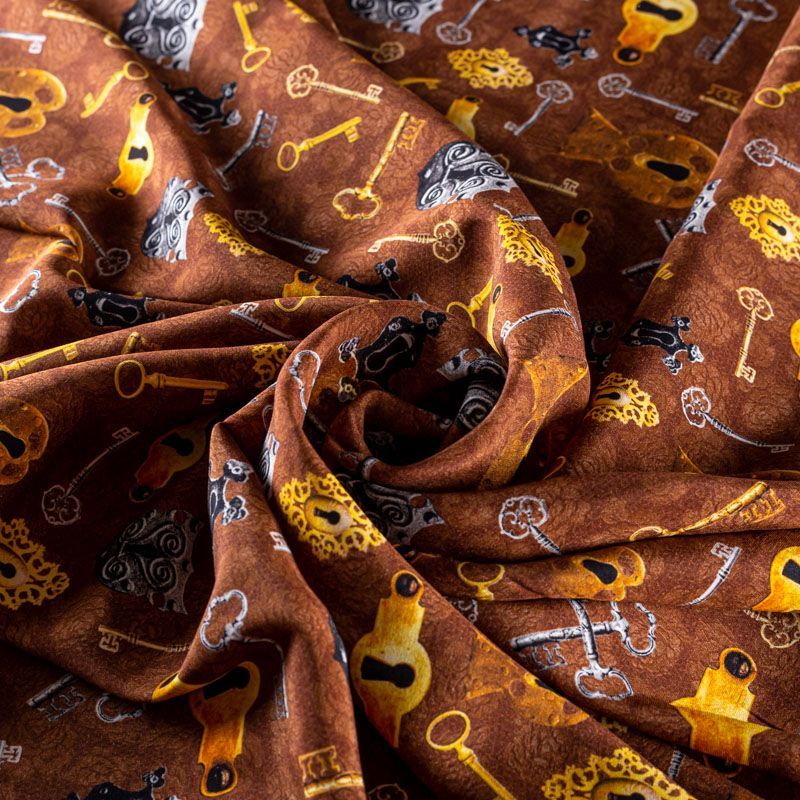 Шелк натуральный К06-298 коричневый принтованный в Санкт-Петербурге