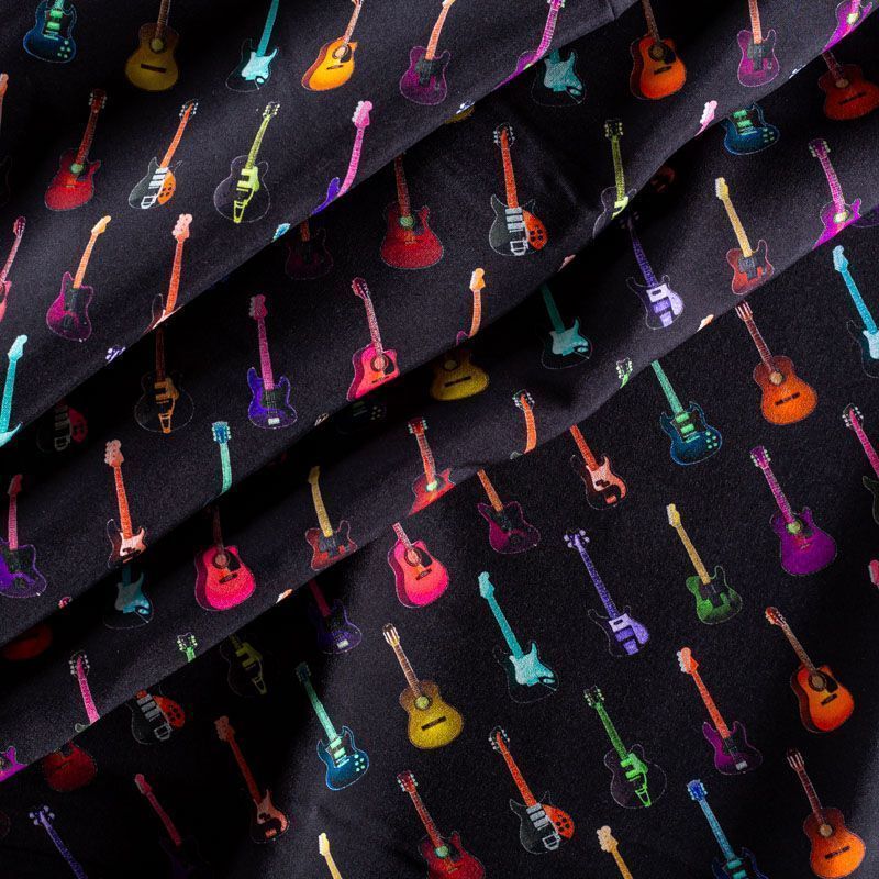 Натуральный шелк с матовой поверхностью, легкий, струящийся, хорошо драпируется, тянется за счет эластана в составе. Модный принт выполнен в ярких оттенках, который будет уместен для пошива летнего сарафана, платья, блузки, костюма в пижамном стиле, широких брюк или юбки.