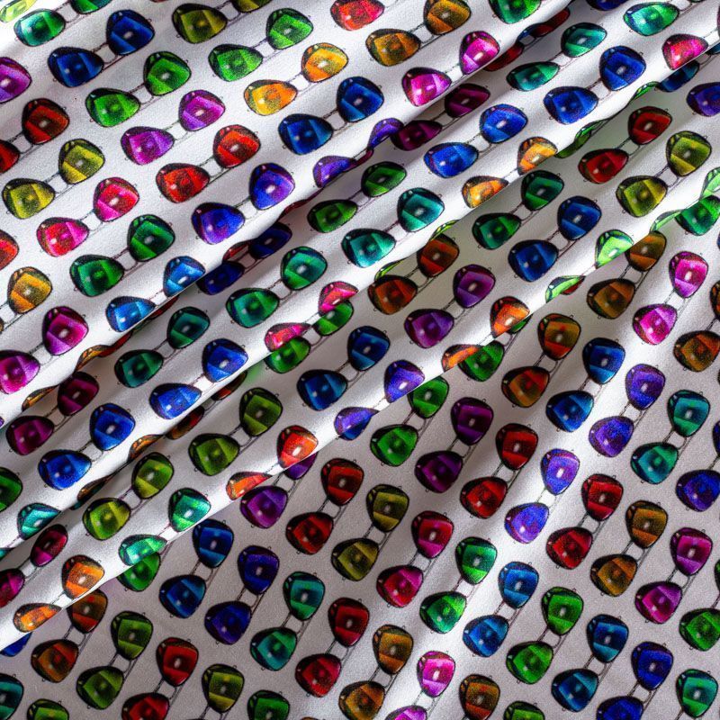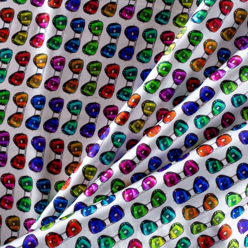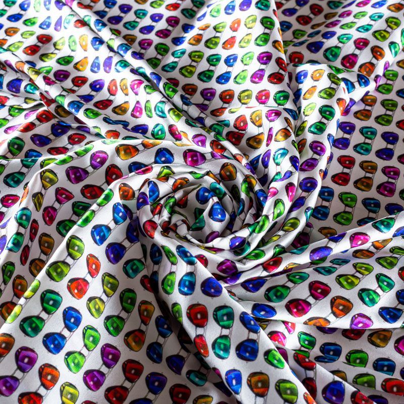 Натуральный шелк с атласной поверхностью, легкий, струящийся, хорошо драпируется, тянется за счет эластана в составе. Модный принт выполнен в ярких оттенках, который будет уместен для пошива летнего сарафана, платья, блузки, костюма в пижамном стиле, широких брюк или юбки.