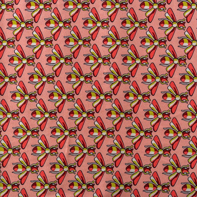 Итальянский матовый шелк розового оттенка с узнаваемым принтом от известного бренда. Ткань тонкая, не просвечивается, отлично драпируется, легкая и струящаяся, тянется за счет эластана в составе, лицевая сторона креповая, изнанка - атласная. Идеально подойдет для пошива платьев и сарафанов расклешенных моделей, с воланами, рюшами, летящих юбок, топов, блузки, рубашки, костюма в пижамном стиле.