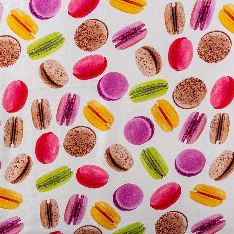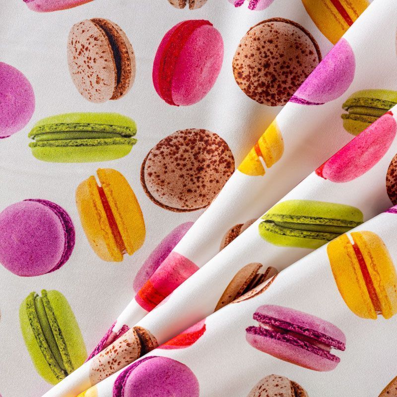 Итальянский шелк с матовой лицевой поверхностью и атласной изнанкой с "вкусным" ярким принтом на молочном фоне, тонкий, слегка прозрачный, отлично драпируется, не много тянется за счет эластана в составе, легкий и струящийся. Идеально подойдет для пошива платьев и сарафанов расклешенных моделей, с воланами, летящих юбок, топов, блузки, костюма в пижамном стиле.