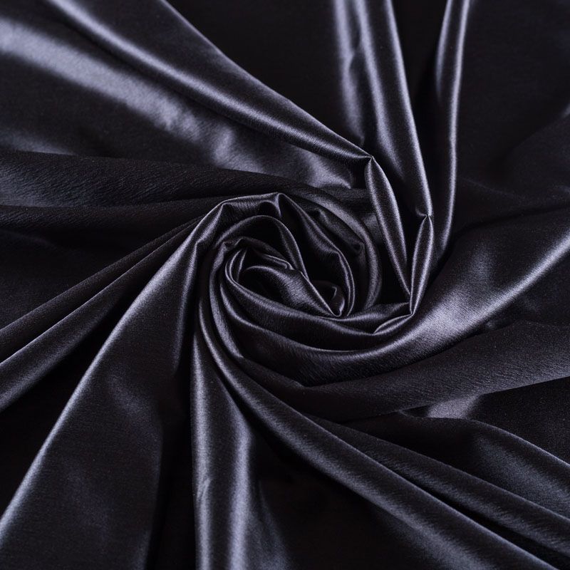 Блузочно-плательный атласный шелк с эластаном глубокого темно-синего цвета. Невесомая гладкая ткань приятно прилегает к телу, дарит ощущение прохлады и нежно струится. Небольшой процент эластана делает материал упругим и растяжимым. Ткань не просвечивает, идеально подойдет для платья, блузки, рубашки, шелкового топа, юбки, актуальна для пижамы и комбинации.