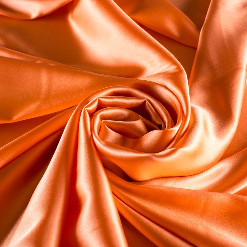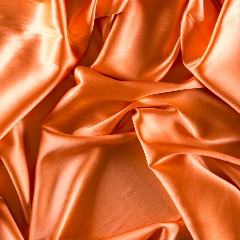 Блузочно-плательный атласный шелк с эластаном оранжевого оттенка. Невесомая гладкая ткань приятно прилегает к телу, дарит ощущение прохлады и нежно струится. Небольшой процент эластана делает материал упругим и растяжимым. Ткань не просвечивает, идеально подойдет для платья, блузки, рубашки, шелкового топа, юбки, актуальна для пижамы и комбинации.