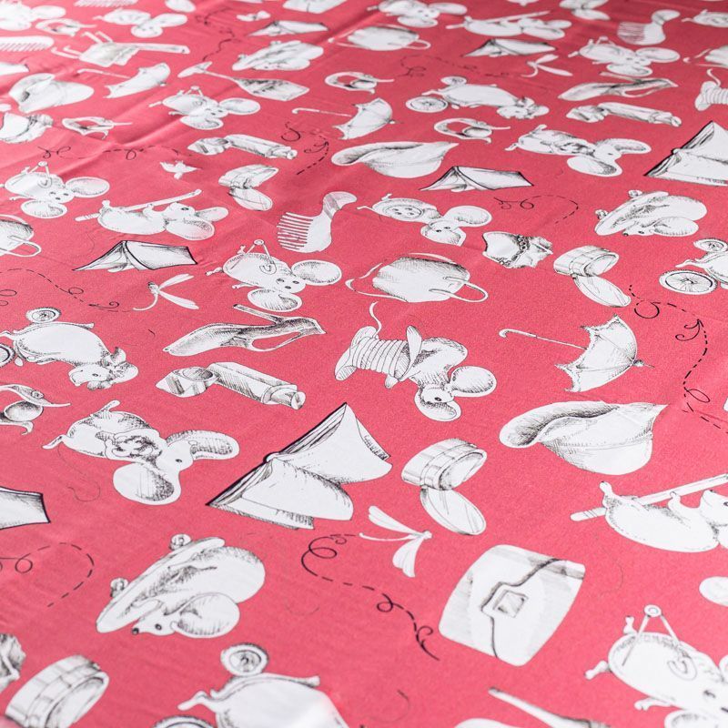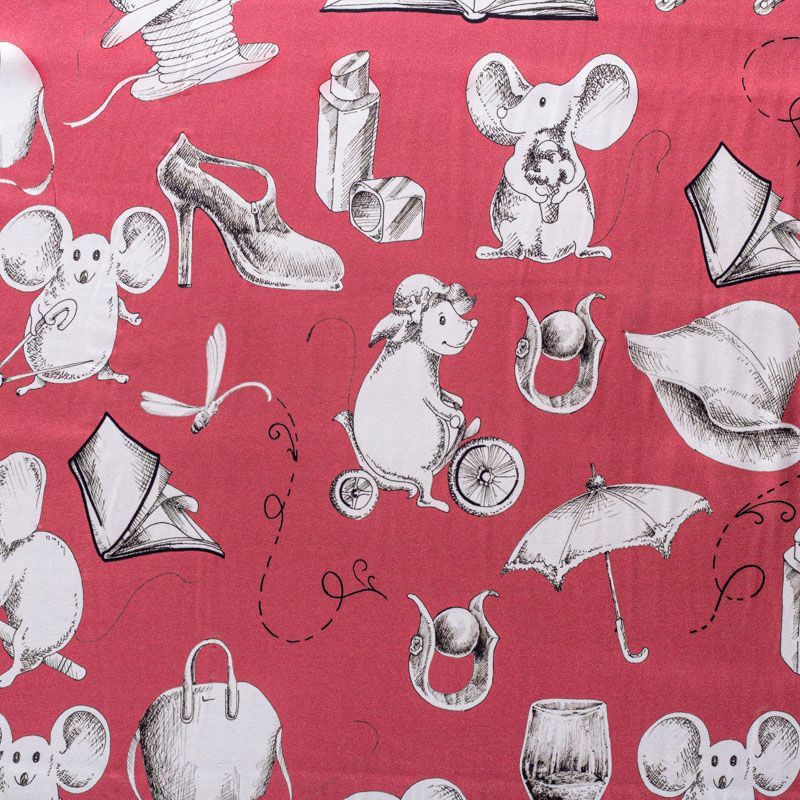 Итальянский матовый шелк кораллового оттенка с узнаваемым игривым принтом от известного бренда. Ткань тонкая, не просвечивается, отлично драпируется, легкая и струящаяся, тянется за счет эластана в составе, лицевая сторона креповая, изнанка - атласная. Идеально подойдет для пошива платьев и сарафанов расклешенных моделей, с воланами, рюшами, летящих юбок, топов, блузки, рубашки, костюма в пижамном стиле.