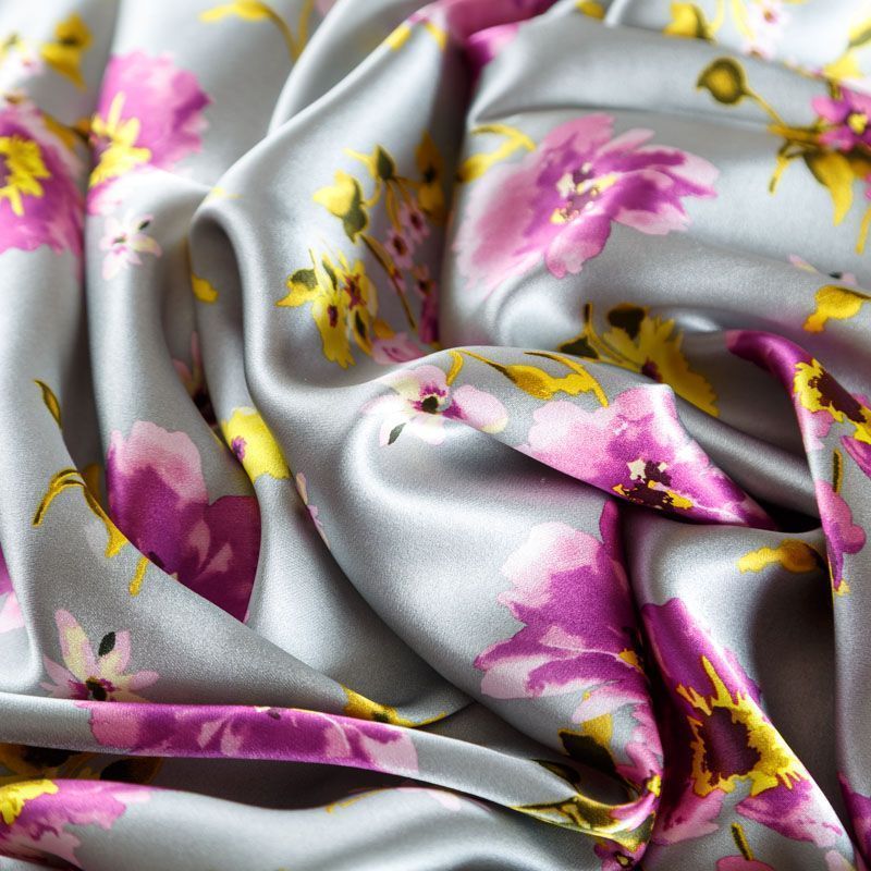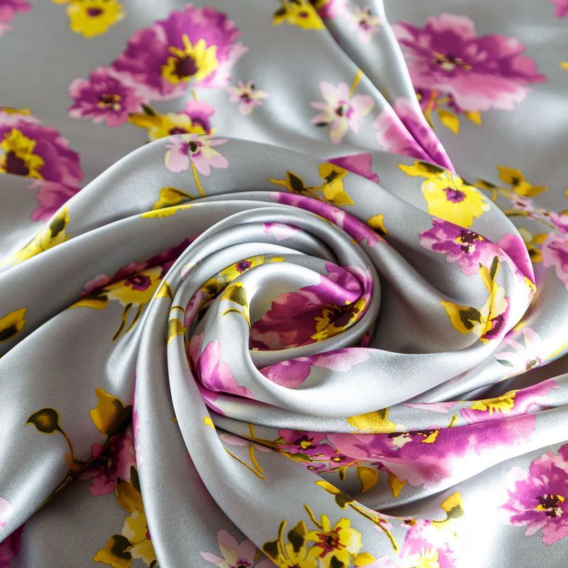 Шелк натуральный К15-381 серо-стальной принтованный в Санкт-Петербурге