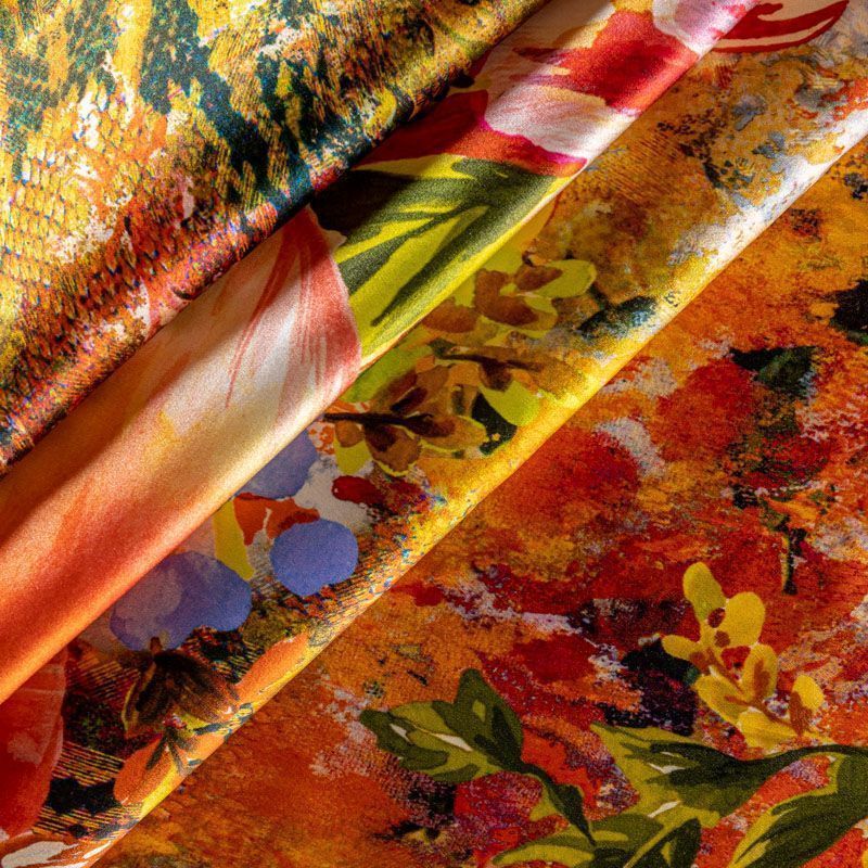 Шелк натуральный К23-177 оранжевый принтованный в Санкт-Петербурге