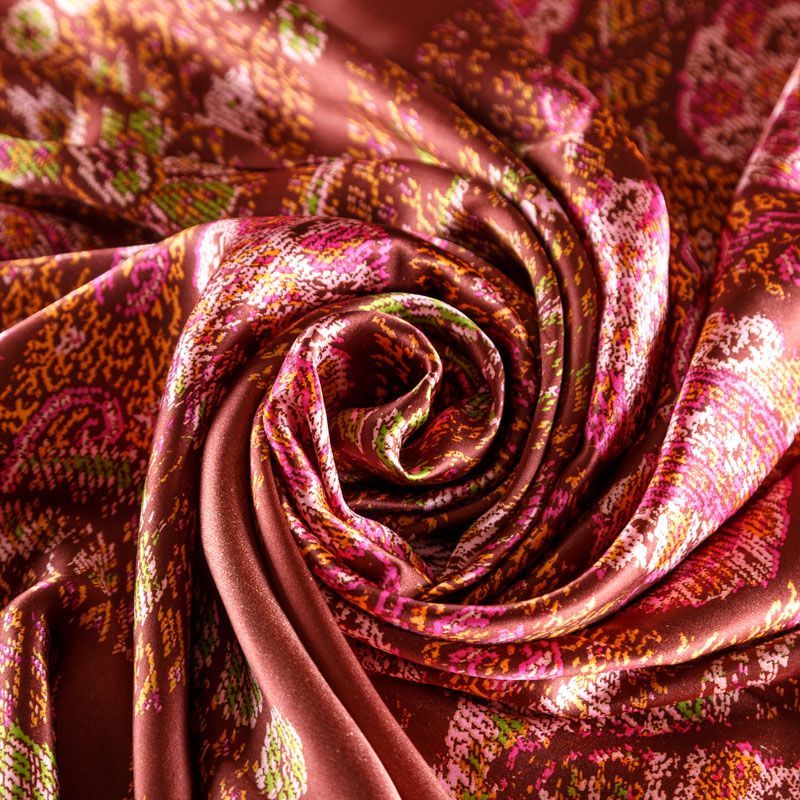 Шелк натуральный К27-047 бордовый принтованный в Санкт-Петербурге