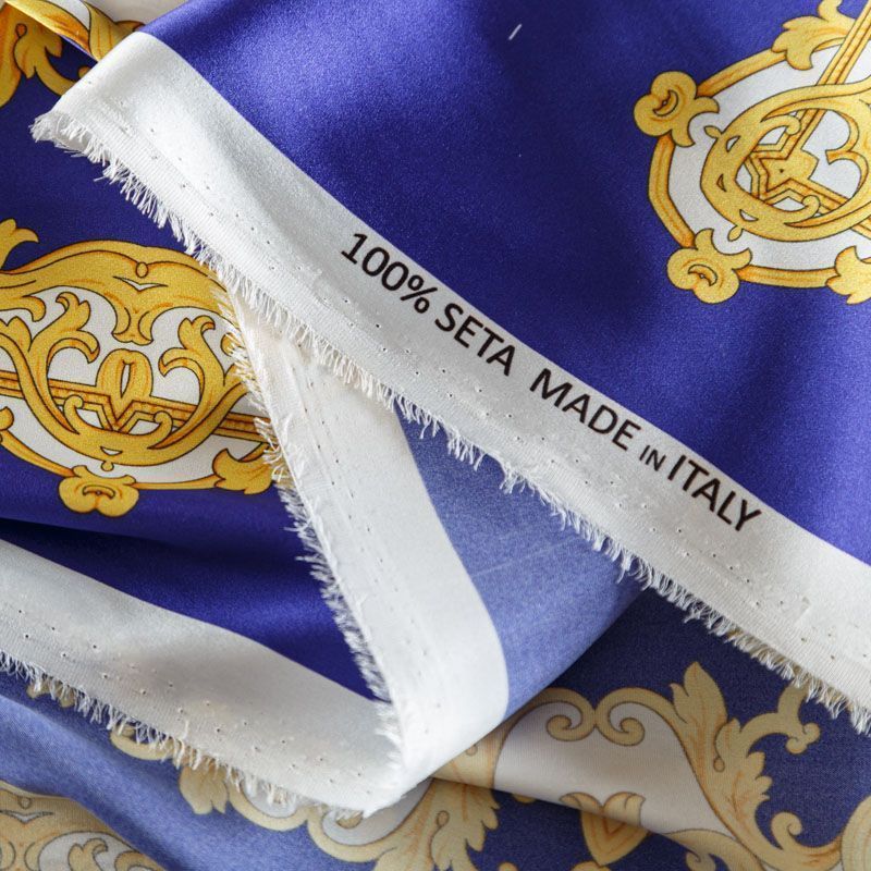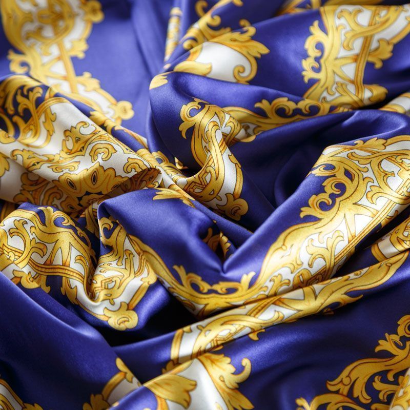 Шелк натуральный К2-309 синий принтованный в Санкт-Петербурге
