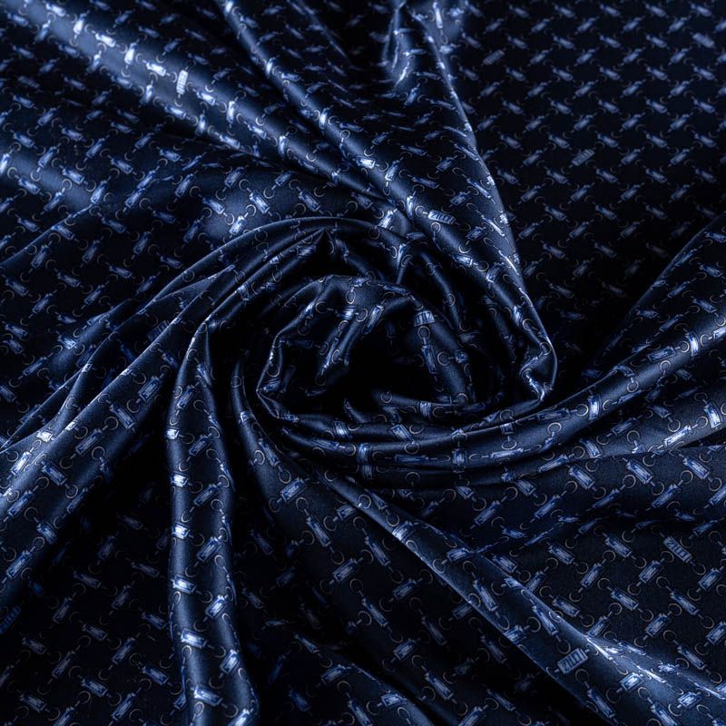 Шелк натуральный К36-244 темно-синий принтованный в Санкт-Петербурге
