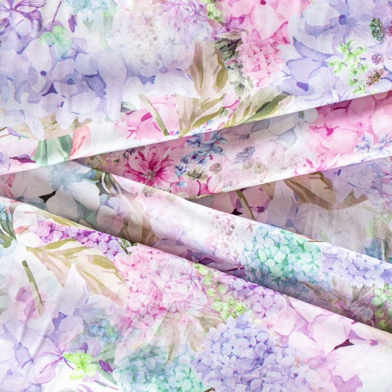 Плательно-блузочный штапель с добавлением шелка с нежным цветочным принтом в пастельных тонах. Ткань очень мягкая, нежная, пластичная, шелковистая на ощупь, хорошо драпируется, практичная. Особенно актуальна летом, шелк-штапель очень легкий, обволакивающий прохладой. Идеален для пошива летней детской одежды, сарафанов, платьев, юбок, блузок, домашней одежды: халатов, ночной пижамы.