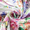 Плательно-блузочный штапель с добавлением шелка с крупным цветочным принтом в пастельных оттенках. Ткань очень мягкая, нежная, пластичная, шелковистая на ощупь, хорошо драпируется, практичная. Особенно актуальна летом, шелк-штапель очень легкий, обволакивающий прохладой. Идеален для пошива летней детской одежды, сарафанов, платьев, юбок, блузок, домашней одежды: халатов, ночной пижамы.