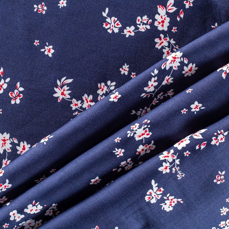 Плательно-блузочный штапель с добавлением шелка с мелким цветочным принтом. Ткань очень мягкая, нежная, пластичная, шелковистая на ощупь, хорошо драпируется, практичная. Особенно актуальна летом, шелк-штапель очень легкий, обволакивающий прохладой. Идеален для пошива летней детской одежды, сарафанов, платьев, юбок, блузок, домашней одежды: халатов, ночной пижамы.