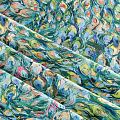 Плательно-блузочный штапель с добавлением шелка зеленого оттенка с цветным абстрактным акварельным принтом. Мягкий, нежный, пластичный, шелковистый на ощупь, хорошо драпируется, практичный. Особенно актуален летом, он очень легкий, обволакивающий прохладой. Идеален для пошива летней детской одежды, сарафанов, платьев, юбок, блузок, домашней одежды: халатов, ночной пижамы.