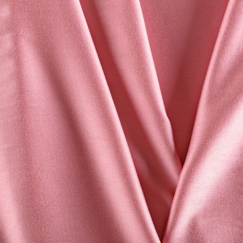 Плательно-блузочный штапель с добавлением шелка в розовом оттенке. Мягкий, нежный, пластичный, шелковистый на ощупь, хорошо драпируется, практичный, тянется за счет эластана в составе. Особенно актуален летом, он очень легкий, обволакивающий прохладой. Идеален для пошива летней детской одежды, сарафанов, платьев, юбок, блузок, домашней одежды: халатов, ночной пижамы.