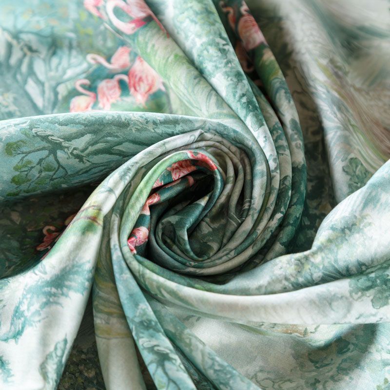 Итальянский плательно-блузочный штапель с добавлением шелка зеленого оттенка с акварельным принтом. Мягкий, нежный, пластичный, шелковистый на ощупь, хорошо драпируется, практичный. Особенно актуален летом, он очень легкий, обволакивающий прохладой. Идеален для пошива летней детской одежды, сарафанов, платьев, юбок, блузок, домашней одежды: халатов, ночной пижамы.