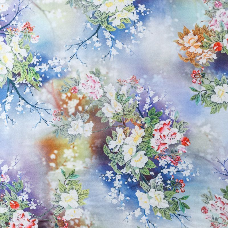 Шелк-штапель 069-09208 голубой принтованный