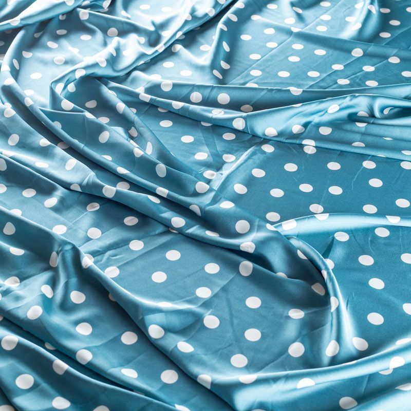 Тонкая, легкая, струящаяся ткань, не просвечивает, очень нежная и прятная к телу, обладает благородным атласным блеском, хорошо драпируется, тянется за счет эластана в составе. Идеально подойдет для пошива блузок, платьев и юбок, а также топов, платков, домашней одежды.