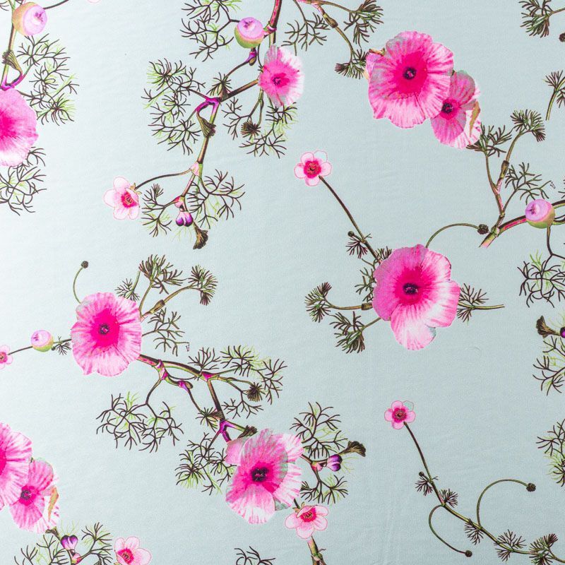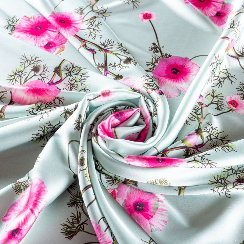 Шелк синтетический 065-01533 серо-мятный принтованный в Санкт-Петербурге