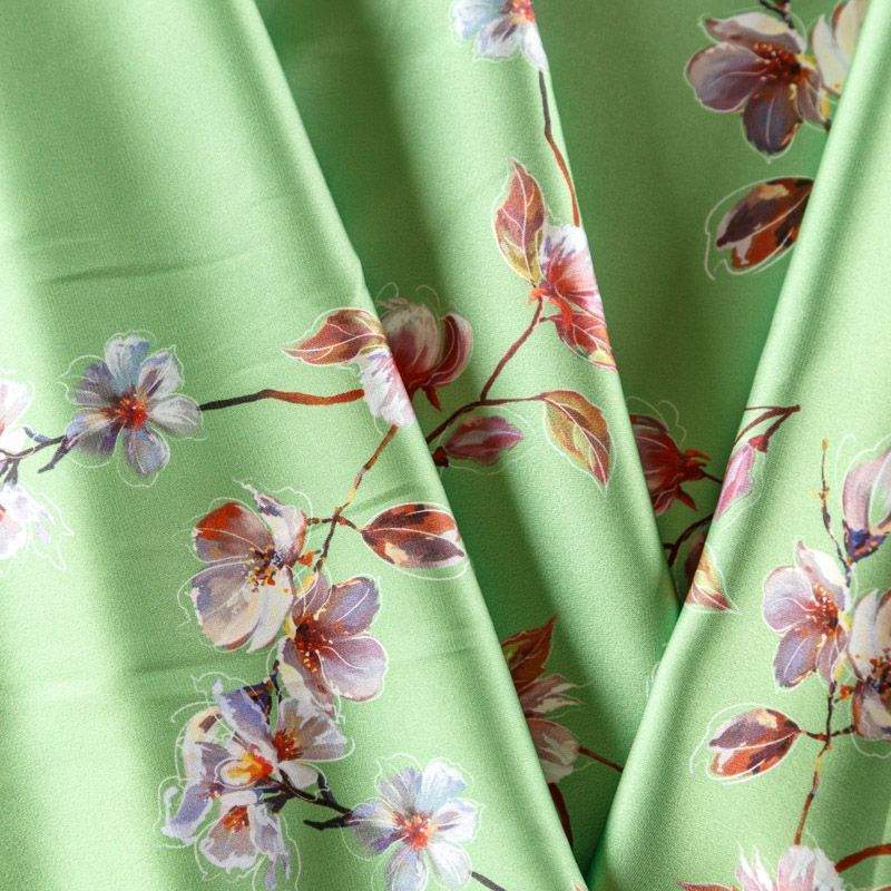 Шелк синтетический К33-044 зеленое яблоко принтованный