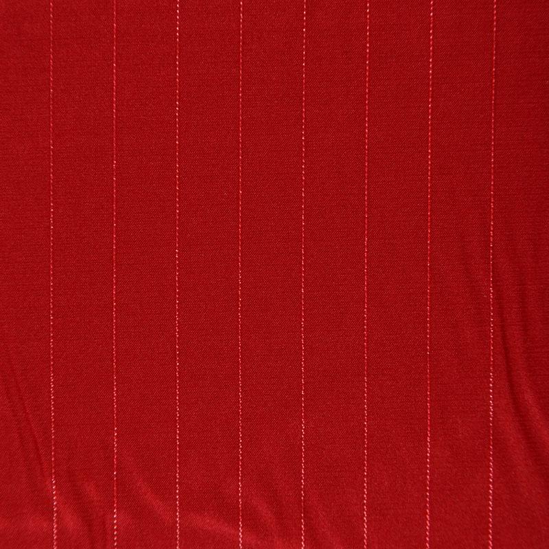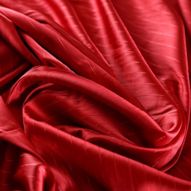 Тонкая, легкая, струящаяся ткань, декорированная тонкими вертикальными полосками люресовой нити, не просвечивает, очень нежная и прятная к телу, обладает благородным атласным блеском, хорошо драпируется, тянется за счет эластана в составе. Идеально подойдет для пошива блузок, платьев и юбок, а также топов, платков, домашней одежды.
