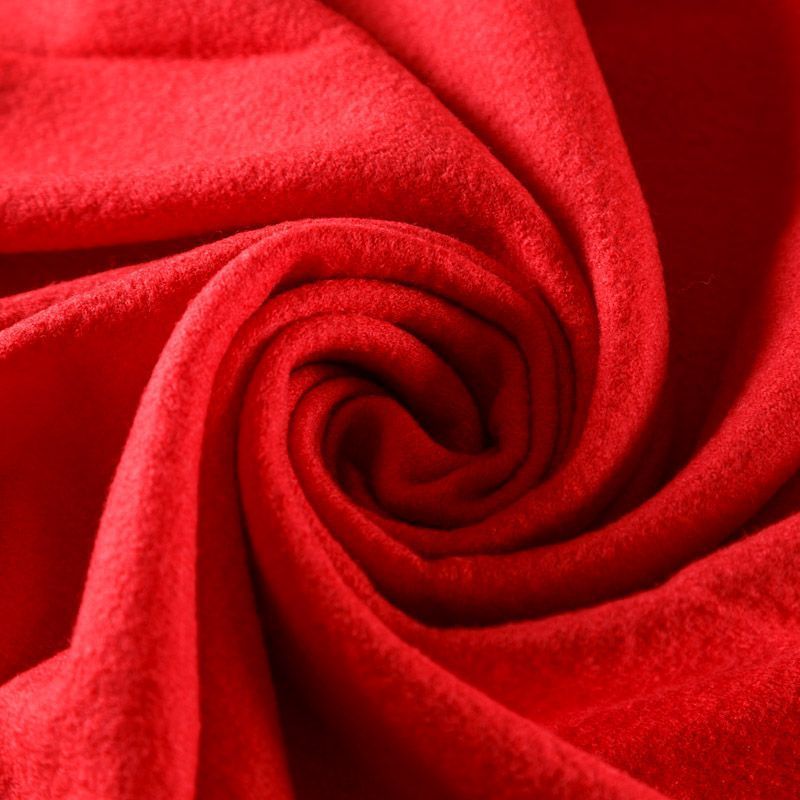 Итальянская буклированная фактурная шерсть в красном оттенке. Ткань хорошо держит форму, приятная на ощупь, гибкая, средней толщины, средней плотности. Подойдет для пошива теплого костюма, юбки, облегченного пальто, куртки, жакета, парки, кейпа, жакета или пончо.