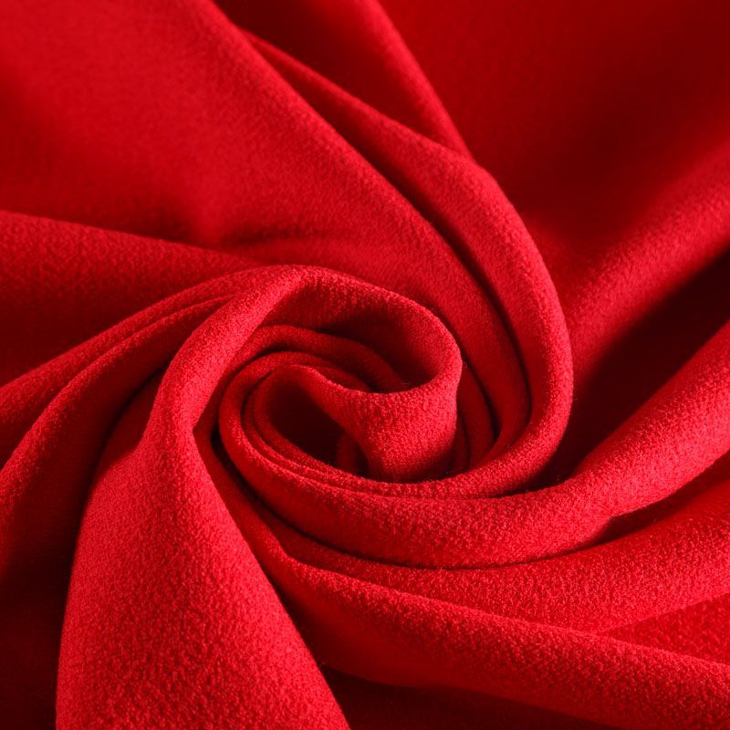 Итальянская фактурная шерсть красного цвета. Ткань двойная, слои разделяются, достаточно пластичная, хорошо держит форму, тянется за счет эластана в составе. Прекрасно подойдет для пошива костюма, юбки, брюк, шорт, легкого пальто, жакета, платья прямого силуэта, жилета.