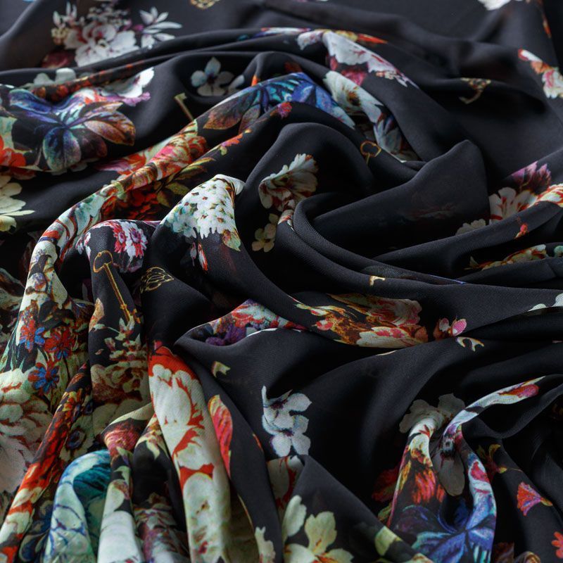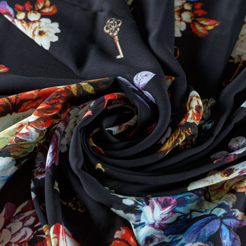 Шифон 068-08386 черный принтованный в Санкт-Петербурге