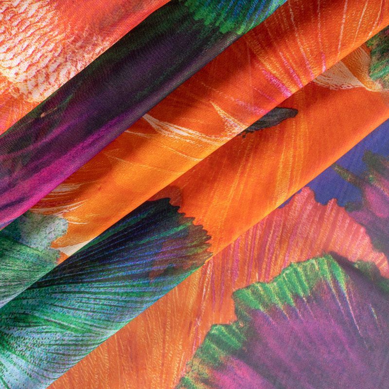 Шифон синего цвета с крупным цветочным принтом в ярких оттенках. Струящийся, летящий, воздушный, полупрозрачный. На ощупь мягкий и приятный.Подойдет для пошива тончайших воздушных блуз, изумительных вечерних платьев и элегантных шарфов.