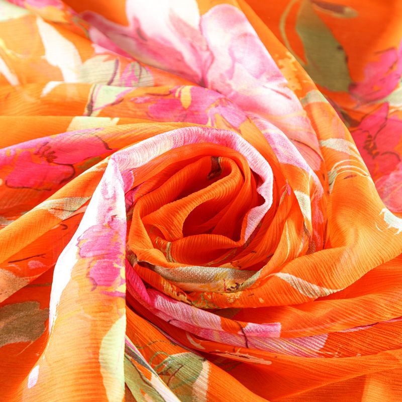 Шифон натуральный К02-426 апельсиновый принтованный в Санкт-Петербурге