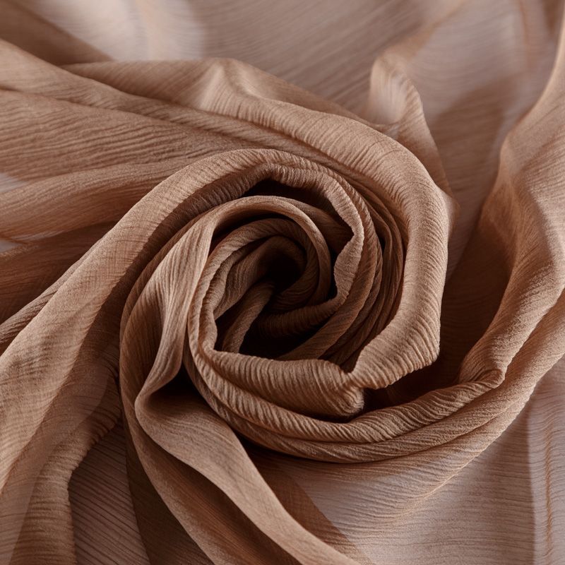 Воздушная шелковая жатая ткань, легкая, тонкая, полупрозрачная. На ощупь шифон-жатка очень мягкий и приятный, не тянется. Подойдет для пошива тончайших воздушных блуз, изумительных вечерних и летних платьев в пол, коротких коктейльных платьев, топов, блузок, туник и элегантных шарфов.