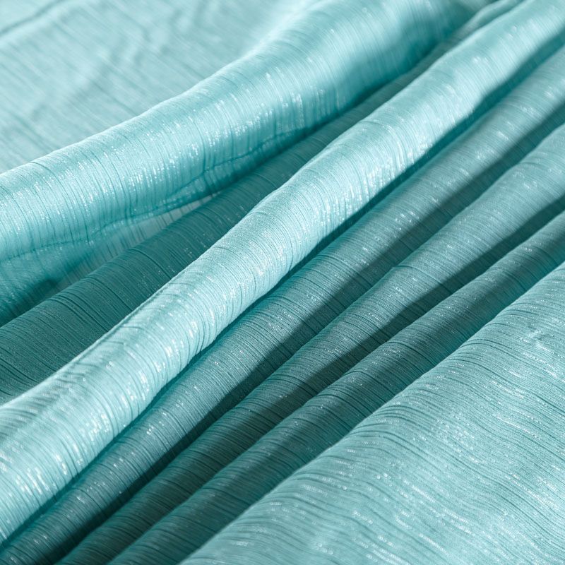 Воздушная жатая ткань с прозрачной люрексной нитью, легкая, тонкая, полупрозрачная. Не тянется и хорошо сохраняет форму. На ощупь шифон-жатка очень мягкий и приятный. Подойдет для пошива тончайших воздушных блуз, изумительных вечерних и летних платьев в пол, коротких коктейльных платьев, топов, блузок, туник и элегантных шарфов.