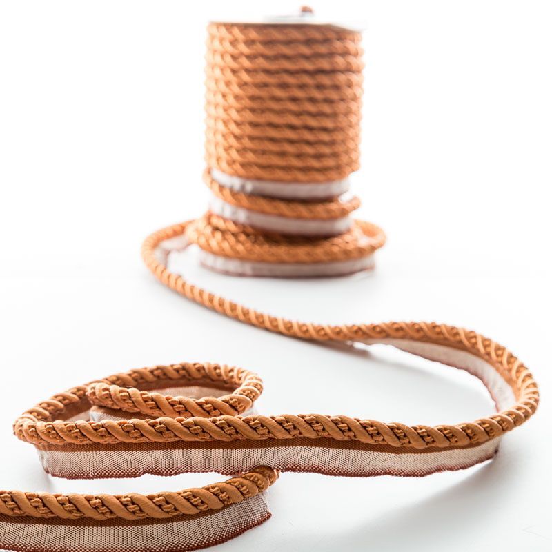 Декоративный витой круглый шнур, снабженый тесьмой для втачивания в стыковочный шов изделия. Применяется для отделки мягкой мебели, чехлов, декорирования домашнего текстиля, штор, покрывал, подушек. Позволяет изделию сохранять форму, образуя каркас. Диаметр шнура - 8 мм.