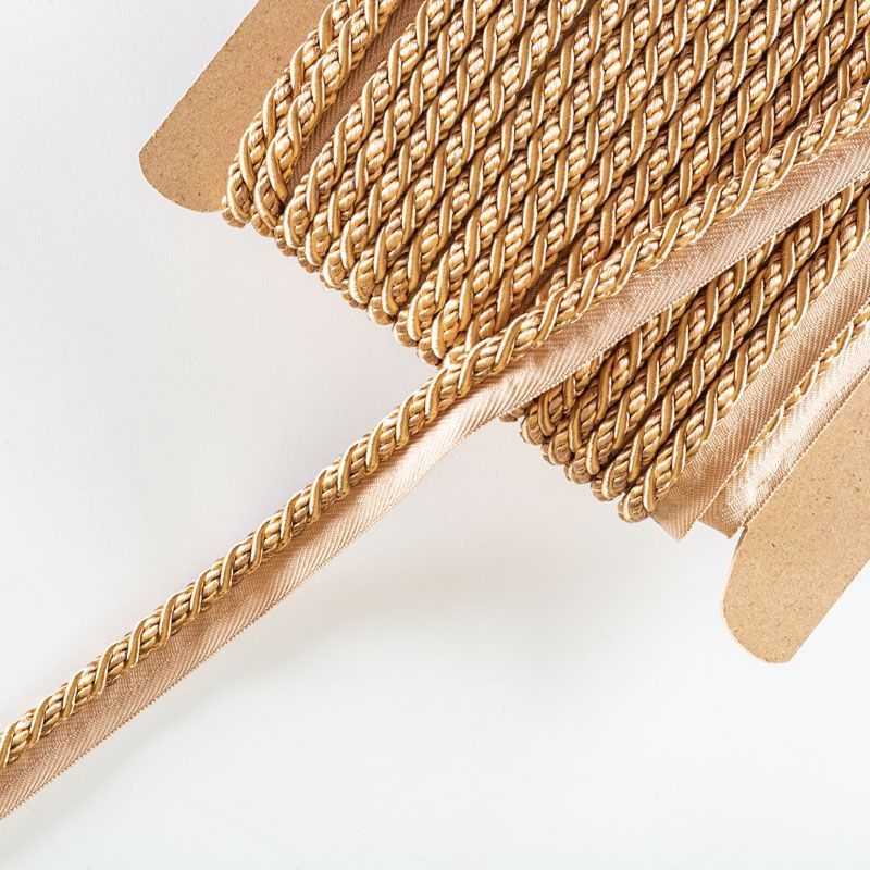 Декоративный витой круглый шнур, снабженый тесьмой для втачивания в стыковочный шов изделия. Применяется для отделки мягкой мебели, чехлов, декорирования домашнего текстиля, штор, покрывал, подушек. Позволяет изделию сохранять форму, образуя каркас. Диаметр шнура - 8 мм. Общая ширина шнура с тесьмой - 2 см.