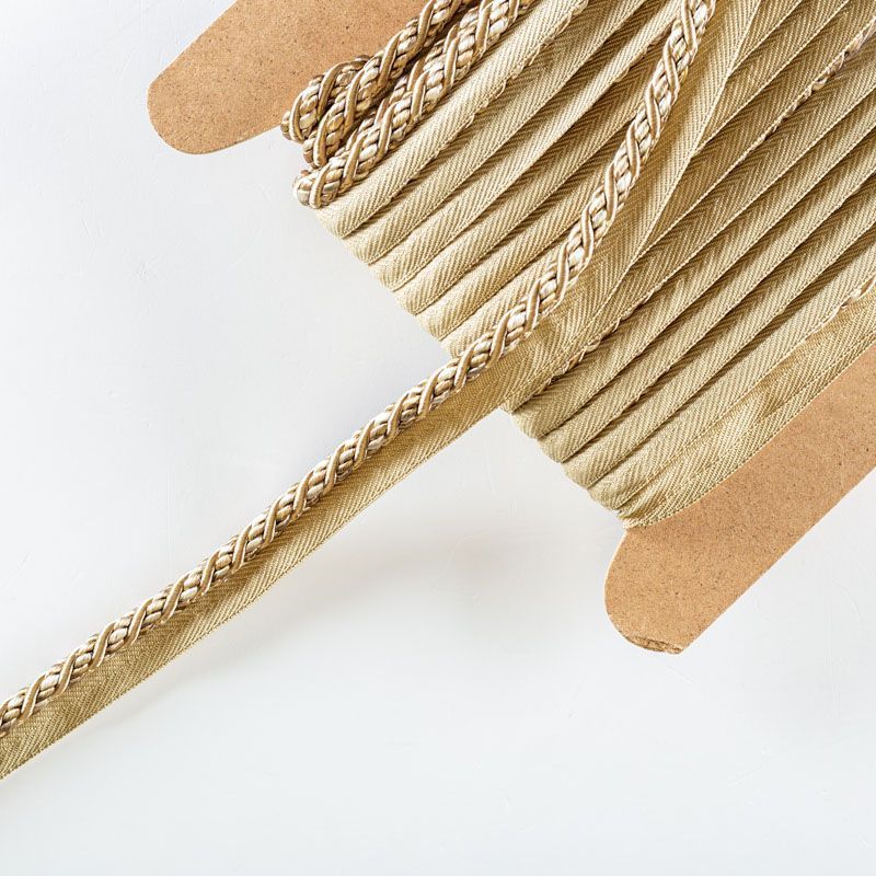 Декоративный витой круглый шнур, снабженый тесьмой для втачивания в стыковочный шов изделия. Применяется для отделки мягкой мебели, чехлов, декорирования домашнего текстиля, штор, покрывал, подушек. Позволяет изделию сохранять форму, образуя каркас. Диаметр шнура - 8 мм. Общая ширина шнура с тесьмой - 2 см.