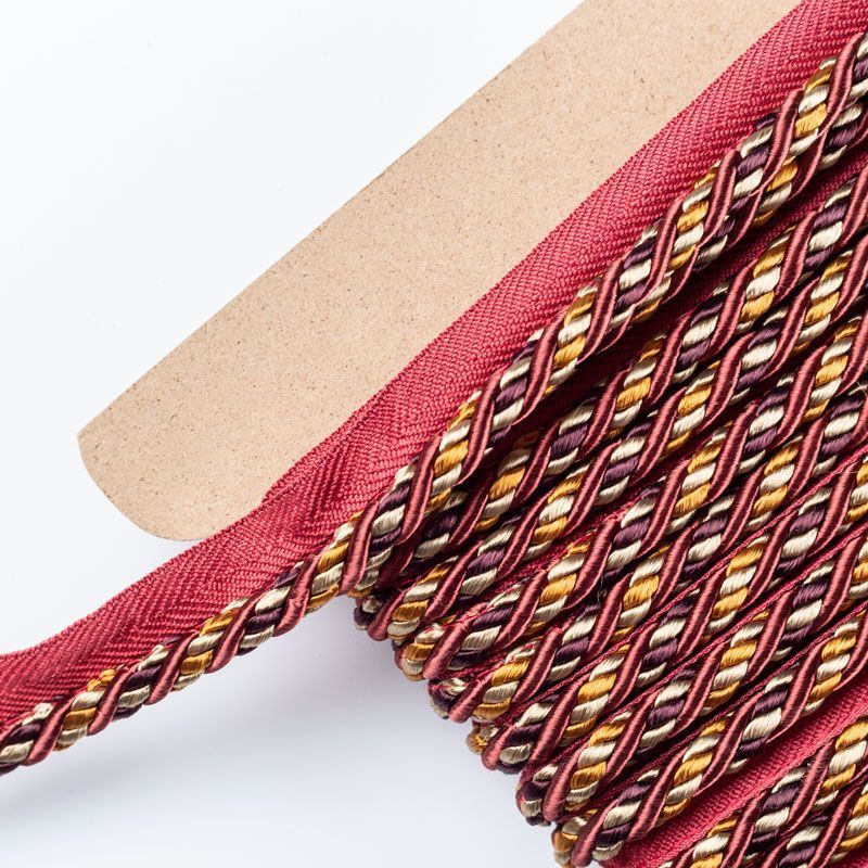 Декоративный витой круглый шнур, снабженый тесьмой для втачивания в стыковочный шов изделия. Применяется для отделки мягкой мебели, чехлов, декорирования домашнего текстиля, штор, покрывал, подушек. Позволяет изделию сохранять форму, образуя каркас. Диаметр шнура - 8 мм. Общая ширина шнура с тесьмой - 2 см.