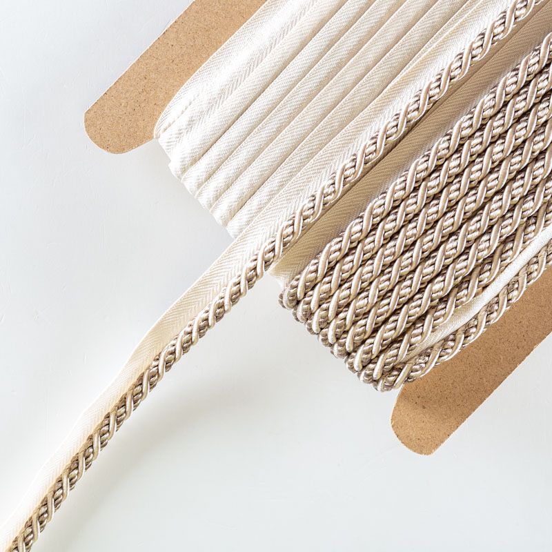 Декоративный витой круглый шнур, снабженый тесьмой для втачивания в стыковочный шов изделия. Применяется для отделки мягкой мебели, чехлов, декорирования домашнего текстиля, штор, покрывал, подушек. Позволяет изделию сохранять форму, образуя каркас. Диаметр шнура - 8 мм. Общая ширина шнура с тесьмой - 2 см.