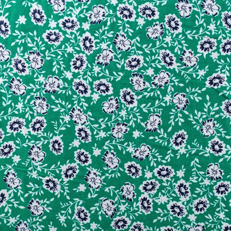Плательно-блузочный штапель с не крупным цветочным принтом на зеленом фоне. Мягкий, тонкий, нежный, пластичный, приятный на ощупь, хорошо драпируется, практичный. Подойдет для пошива платья, топа, блузки, рубашки, юбки, летних брюк.