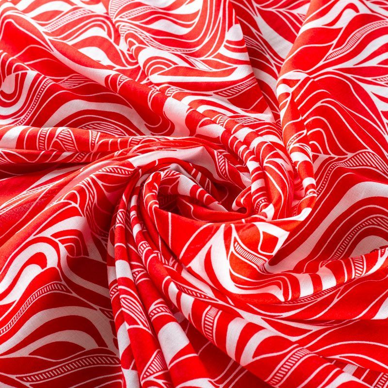 Плательно-блузочный штапель с абстрактным принтом на белом фоне. Мягкий, тонкий, нежный, пластичный, приятный на ощупь, хорошо драпируется, практичный. Подойдет для пошива платья, топа, блузки, рубашки, юбки, летних брюк.