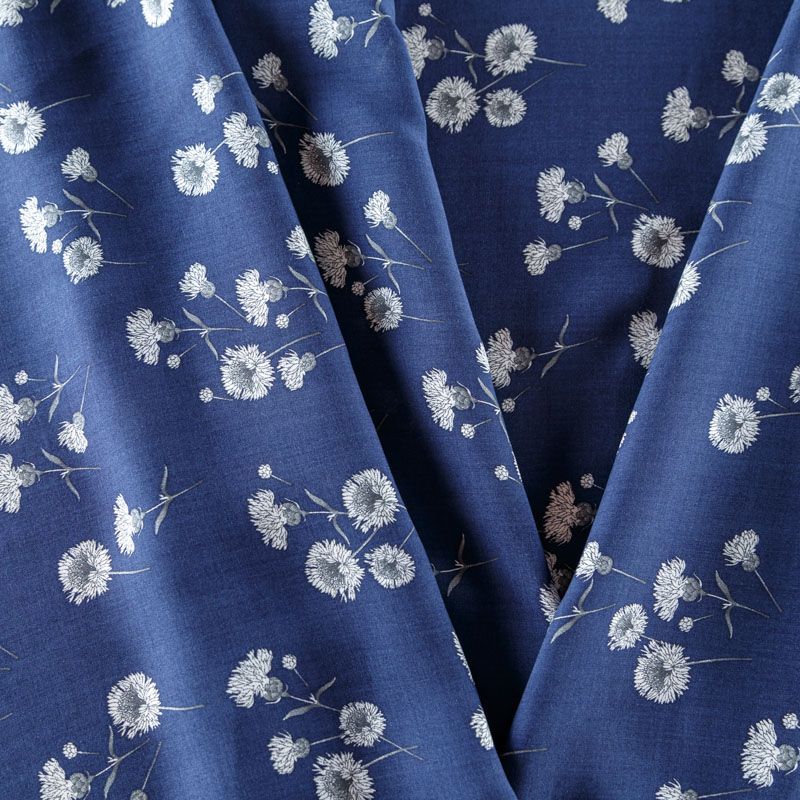 Итальянский плательно-блузочный штапель темно-синего цвета с нежным цветочным принтом. Ткань мягкая, тонкая, нежная и пластичная, приятная на ощупь, хорошо драпируется, практичная. Подойдет для пошива платья, топа, блузки, рубашки, юбки, летних брюк.
