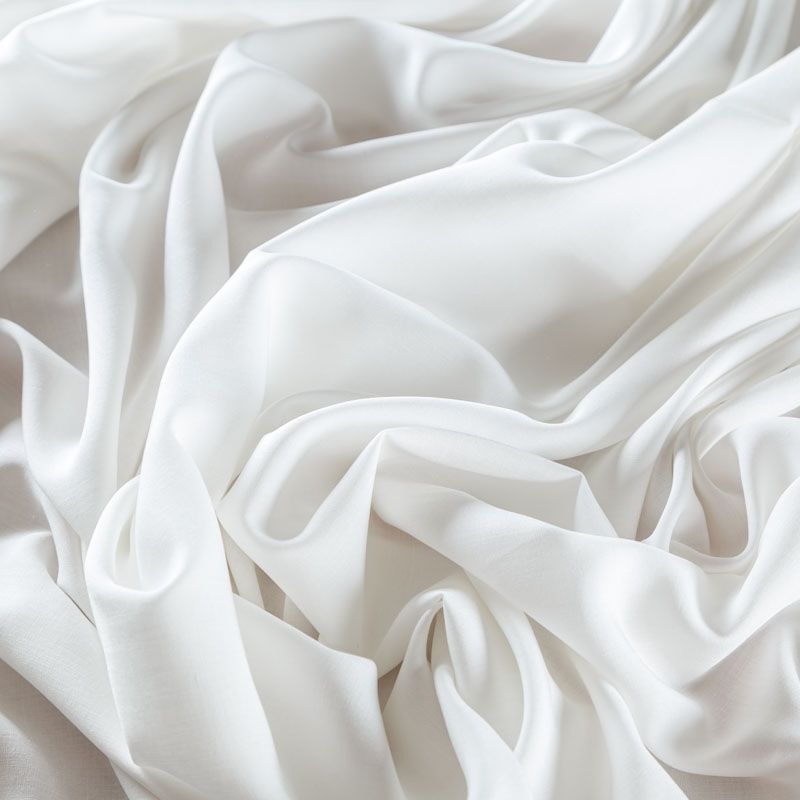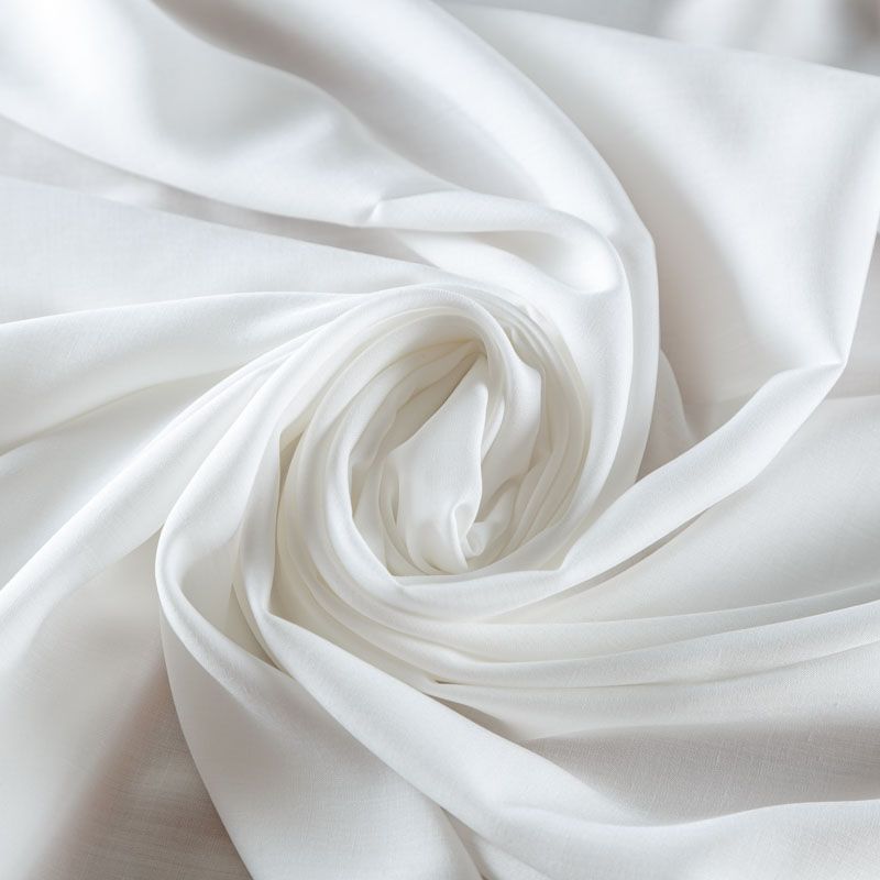 Мягкий, нежный, пластичный, шелковистый на ощупь штапель молочного оттенка, хорошо драпируется, практичный. Особенно актуален летом, он очень легкий, обволакивающий прохладой. Идеален для пошива летней детской одежды, сарафанов, платьев, юбок, блузок, домашней одежды: халатов, ночной пижамы.