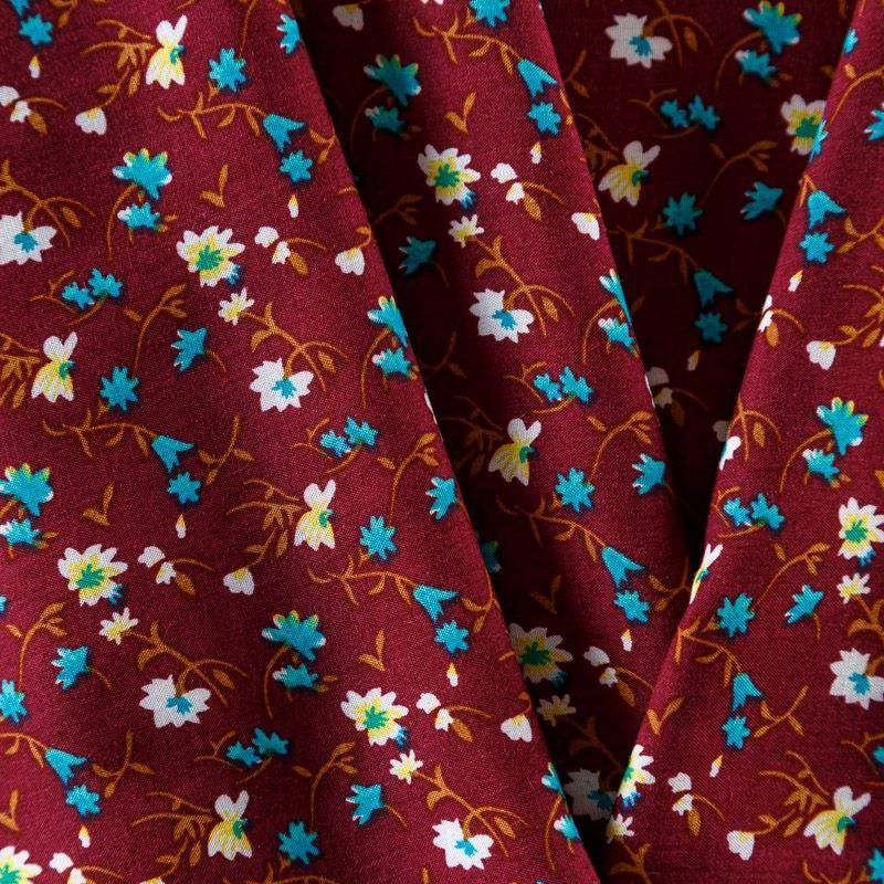 Плательно-блузочный штапель с мелкоцветным принтом на бордовом фоне. Мягкий, тонкий, нежный, пластичный, приятный на ощупь, хорошо драпируется, практичный. Подойдет для пошива платья, топа, блузки, рубашки, юбки, летних брюк, комбинезона.