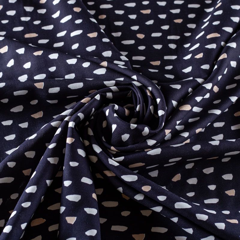 Плательно-блузочный штапель с абстрактным принтом на черном фоне. Мягкий, тонкий, нежный, пластичный, приятный на ощупь, хорошо драпируется, практичный. Подойдет для пошива платья, топа, блузки, рубашки, юбки, летних брюк, комбинезона.