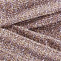 Плательно-блузочный штапель с мелким анималистическим принтом на белом фоне декорирован золотистой люрексовой нитью. Мягкий, тонкий, нежный, пластичный, приятный на ощупь, не много просвечивает, хорошо драпируется, практичный. Подойдет для пошива платья, топа, блузки, рубашки, юбки, летних брюк.
