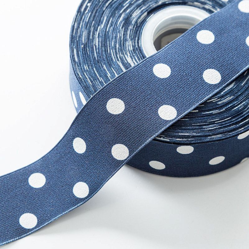 Тесьма декоративная 40 мм белый горох 590944 синий в Санкт-Петербурге