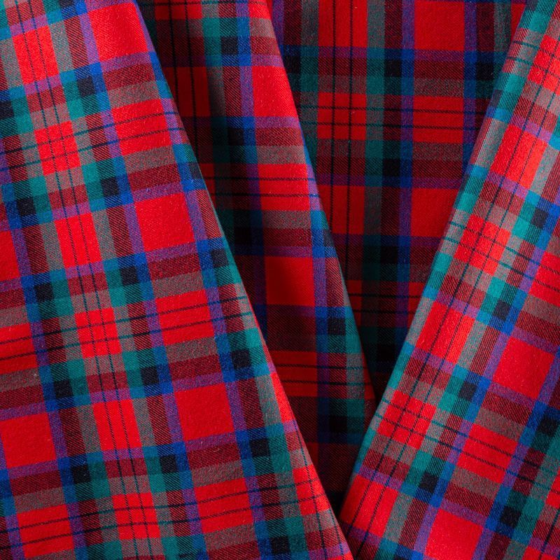 Вискозная костюмная ткань средней плотности, мягкая и приятная на ощупь, немного тянется, формоустойчива, хорошо драпируется и образует мягкие складки. Сочетание линий черного, синег и зеленого цветов на ярком красном фоне образует сложную красивую клетку. Ткань отлично подойдет на костюмы, юбки, брюки, платья, жакеты.