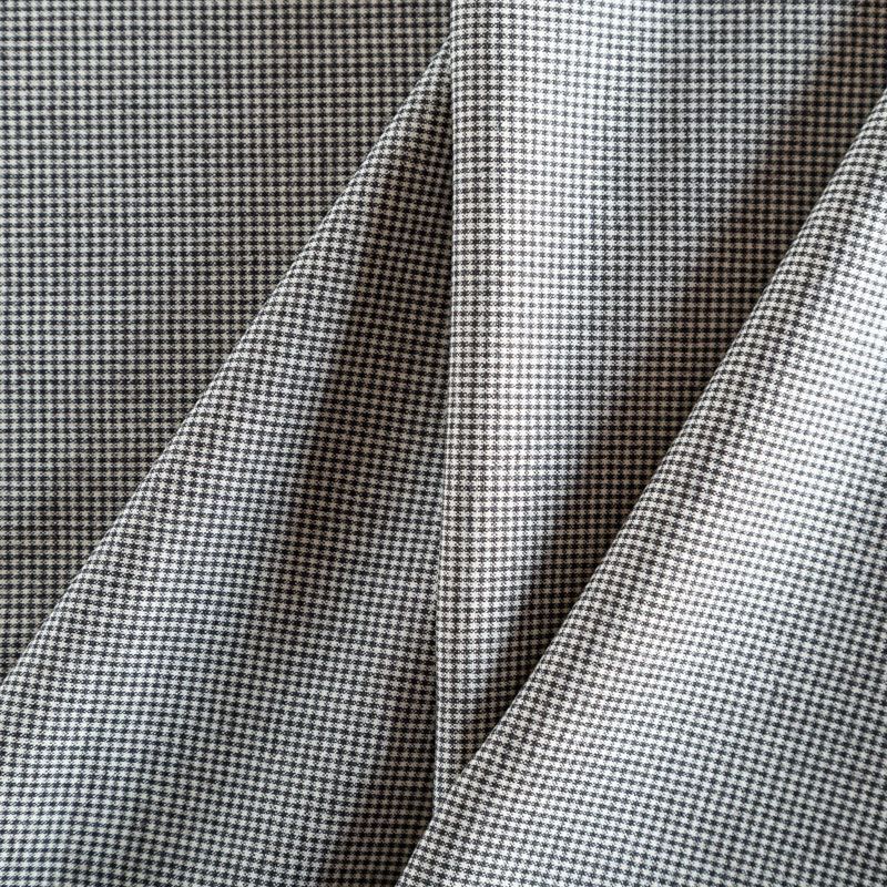 Итальянская костюмно-плательная шерсть в черно-белой гамме. Ткань тонская, легкая, суховатая, держит форму в заложенных складках,  тянется за счет эластана в составе. Подойдет для пошива платьев, сарафана, жакета, костюма, брюк, шорт или юбки.