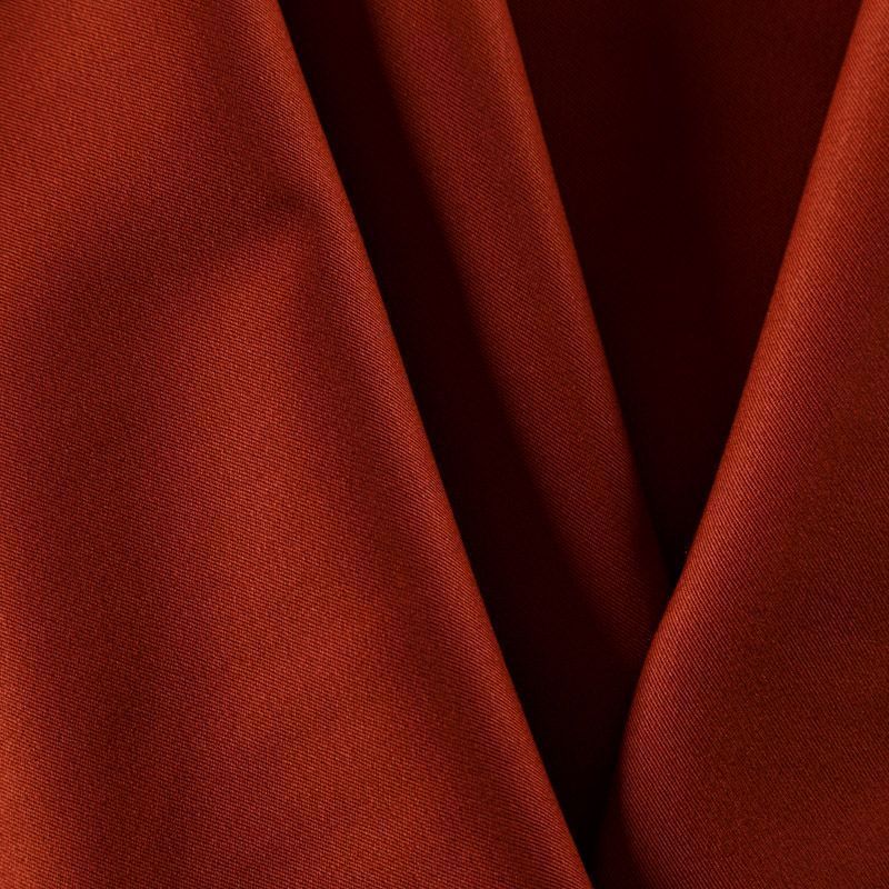 Итальянская костюмная шерсть темно-терракотового оттенка. Ткань достаточно плотная, хоршо держит форму, поверхность имеет диагональный рубчик, не колется, пластичная, хорошо драпируется. Идеально подойдет для пошива брюк, юбки, платья или сарафана, костюма, жакета, легкого пальто.