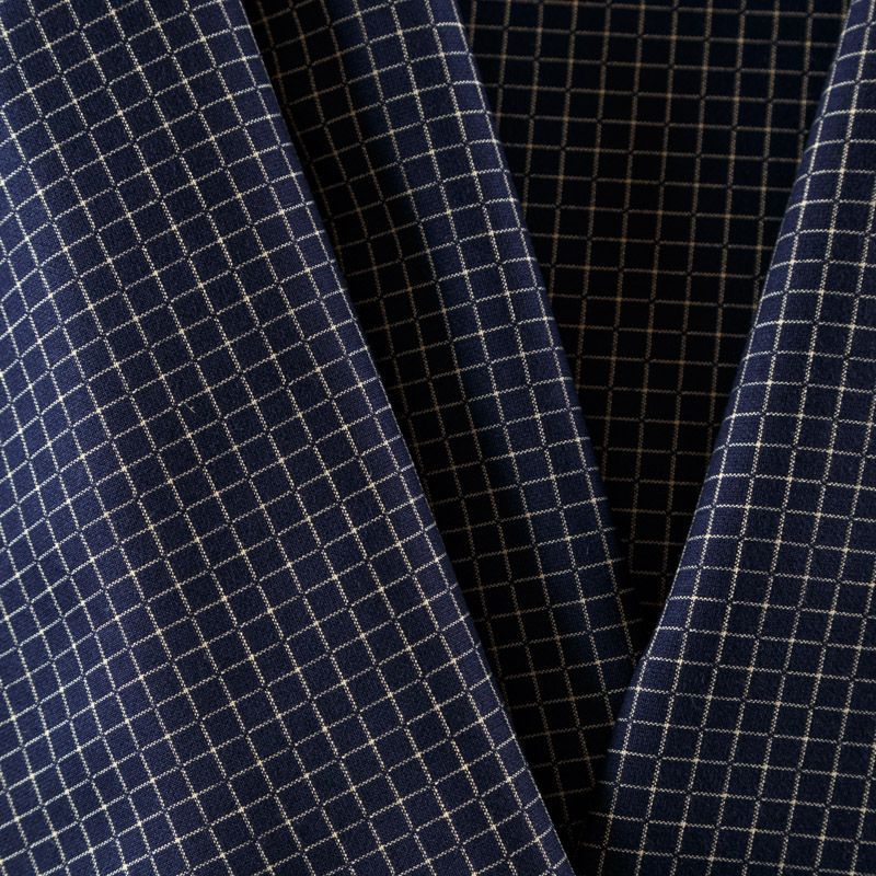 Оригинальная двухсторонняя ткань с принтом клетка с одной стороны и мелким геометрическим рисунком в виде молочных точек - с другой. Материал плотный, но не толстый, хорошо драпируется, тянется за счет эластана в составе, имеет мягкую поверхность с небольшими ворсинками. Прекрасно подходит для пошива платьев, сарафанов, юбок, брюк, жакетов.
