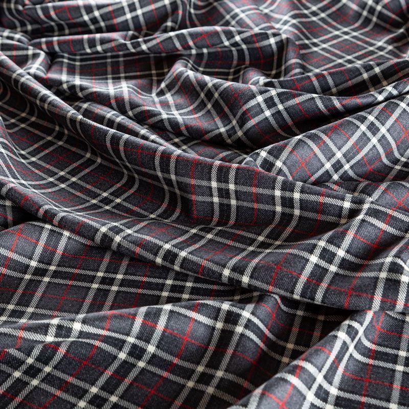 Итальянская костюмная шерсть средней плотности, мягкая и приятная на ощупь, формоустойчива, хорошо драпируется и образует мягкие складки. Сочетание линий графитового, красного и белого цветов образует сложную красивую клетку тартан. Ткань отлично подойдет на костюмы, юбки, брюки, платья, жакеты, для школьной формы.
